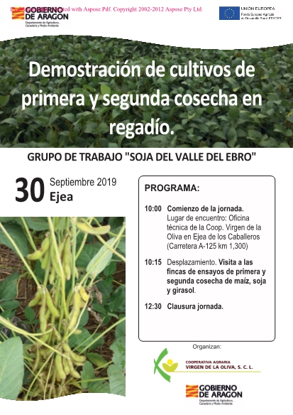 El grupo de trabajo "Soja del Valle del Ebro" va a realizar una jornada demostrativa sobre el cultivos de primera y segunda cosecha en regadío.