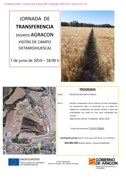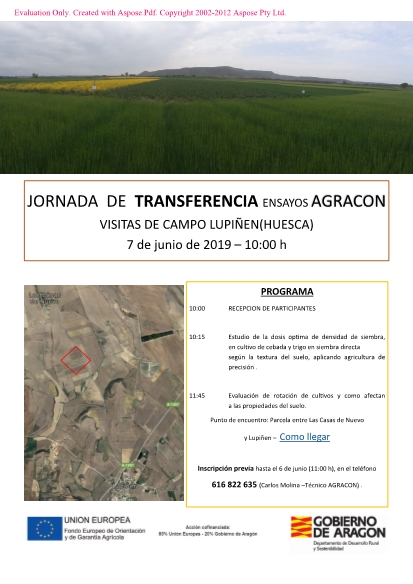 Jornadas para conocer los ensayos que se realizan en cereal de invierno. 10:00 Ensayos de Lupiñén - 18:00 Ensayo de Siétamo.