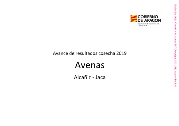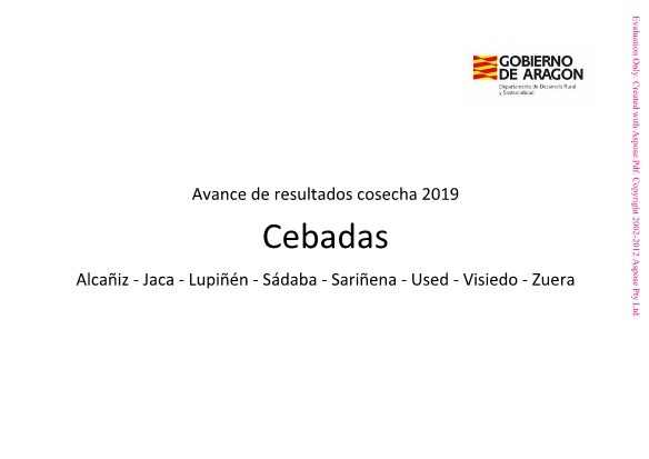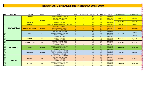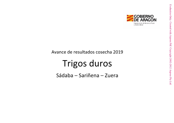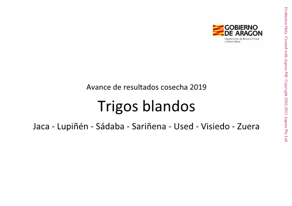 Resultado de los ensayos de cereales de invierno en Aragón. Avance de resultados cosecha 2019.